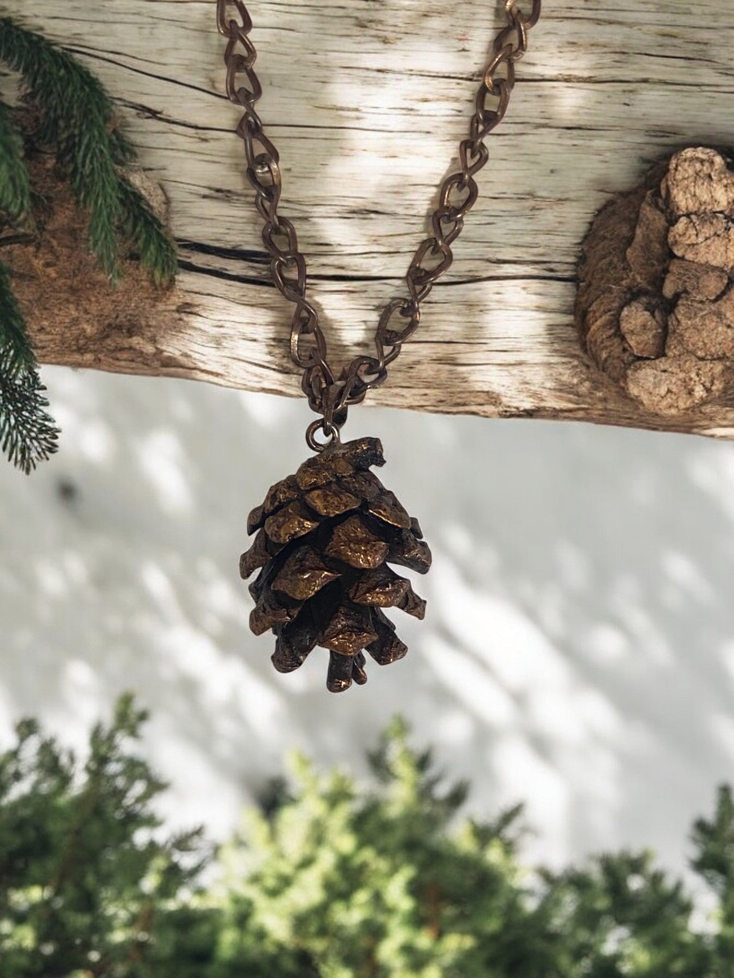 Kaunis pronssinen männynkäpy.
