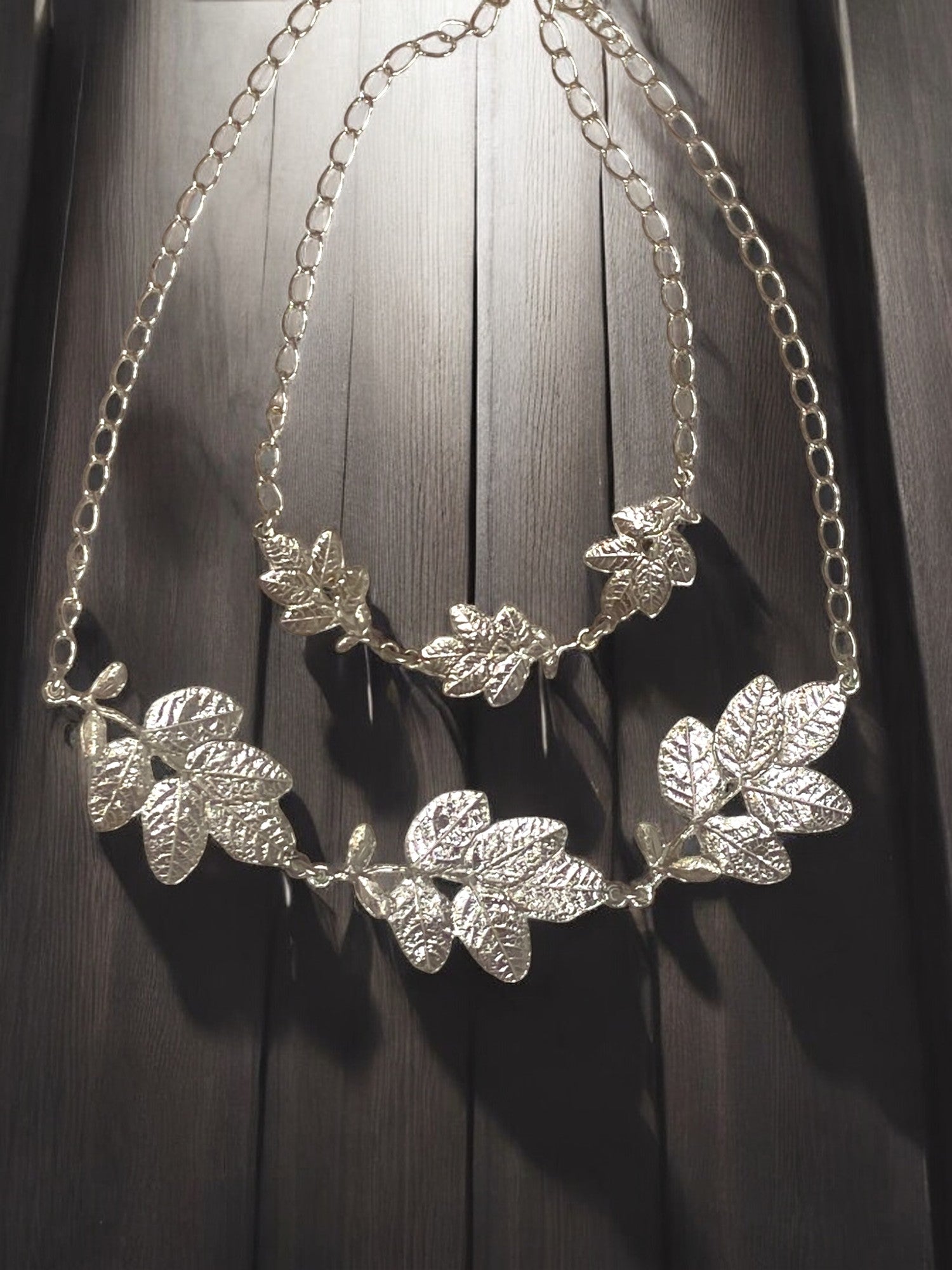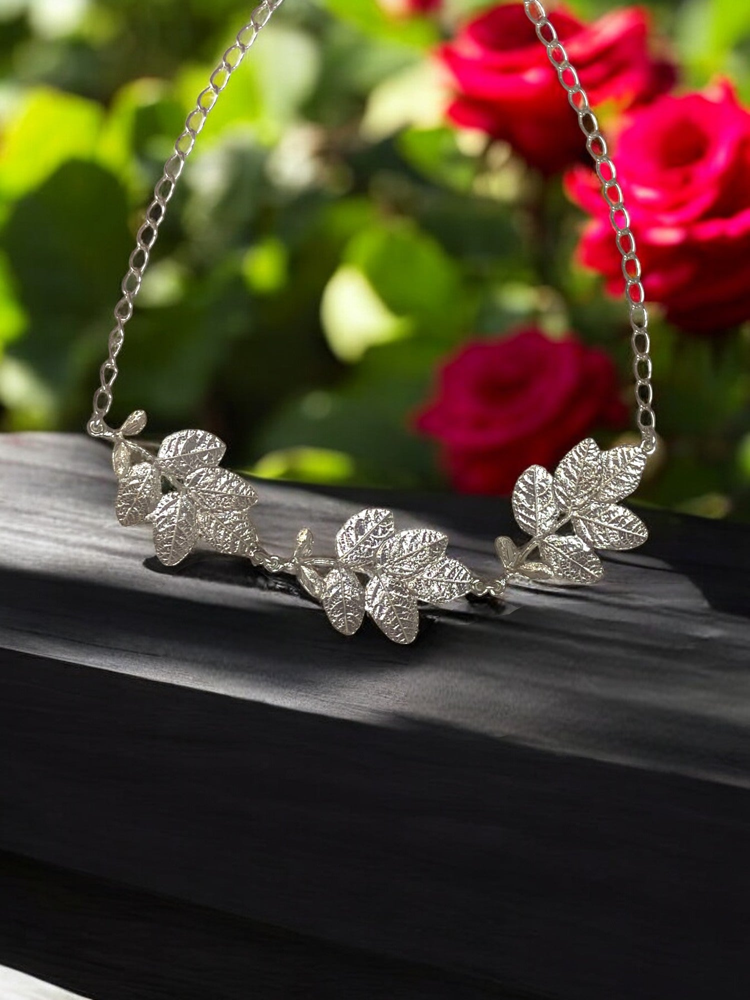 Kaunis luonnon luoma Ruusunlehti muotoiltuna hopeakoruksi. Saatavilla kahta eri kokoa.